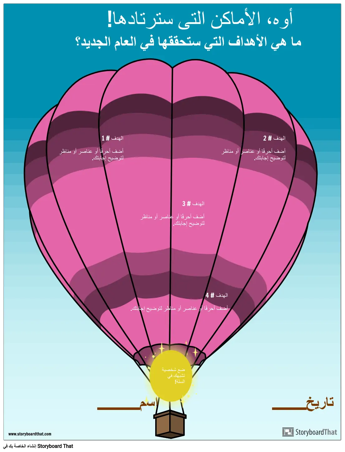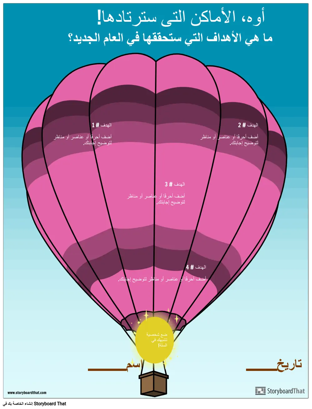 يمكن للطلاب كتابة وتوضيح أهدافهم للعام الجديد بالإضافة إلى إضافة شخصية تشبههم!