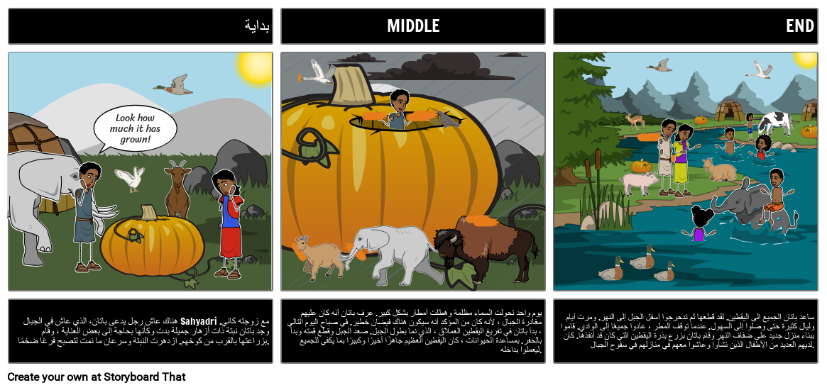 يمكن للطلاب إنشاء ملخص البداية ، والمتوسط ، والنهاية لقرع باتان!