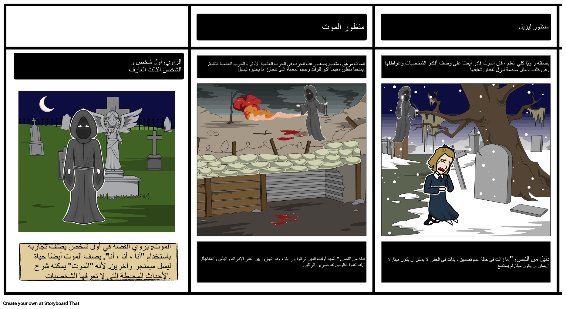 إن تحليل اختيار المؤلف للراوي ووجهة نظرهم أو منظورهم يمنح القارئ فهمًا أعمق للقصة والشخصيات وتحيزاتهم ودوافعهم. قام مؤلف كتاب The Book Thief ، ماركوس زوساك ، باختيار غير عادي باستخدام الموت باعتباره الراوي. سمح ذلك له أن يصف حياة ليسيل ميمنجر ، وكذلك وصف الفظائع