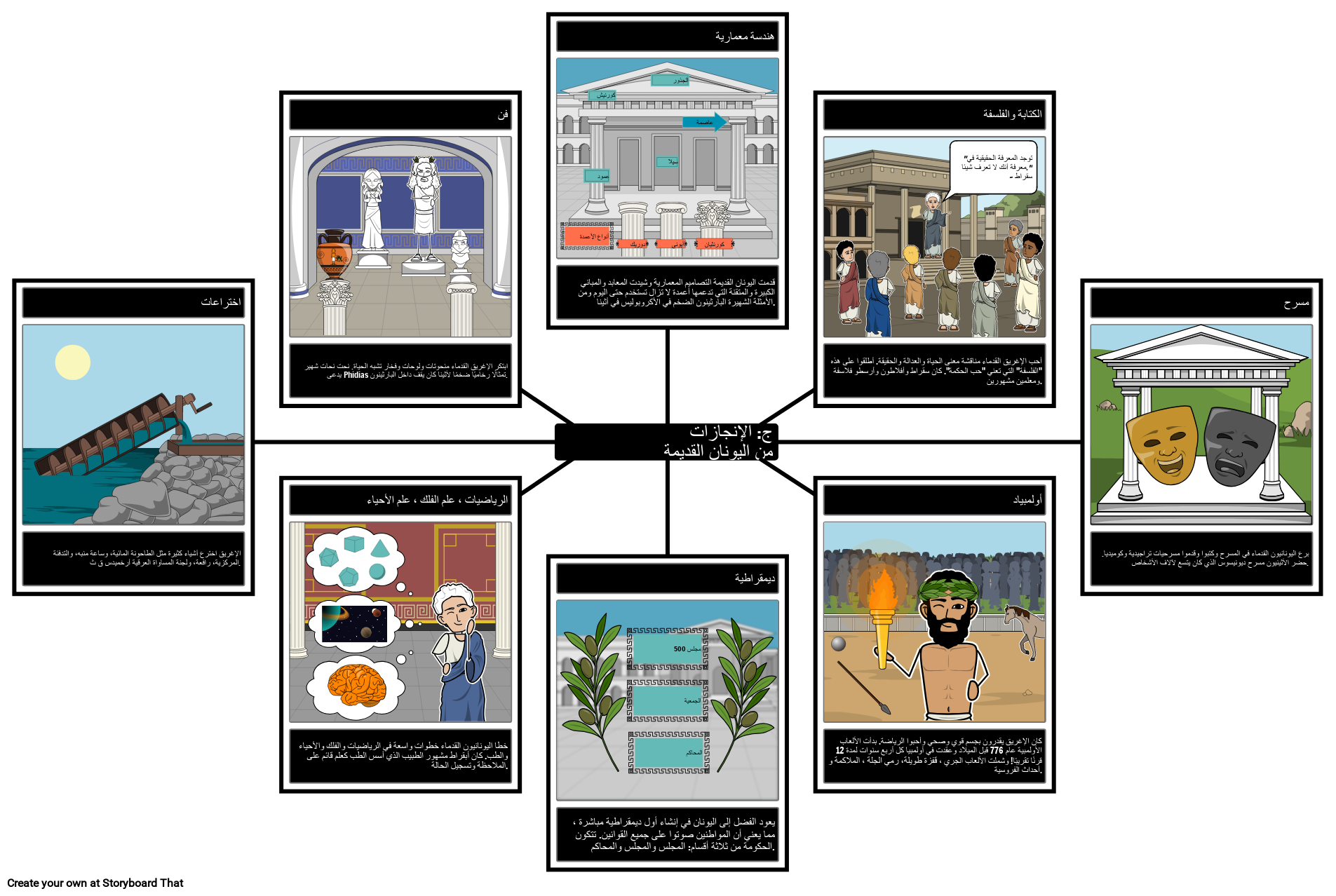 الإغريق اخترع أشياء كثيرة مثل الطاحونة المائية، وساعة منبه، والتدفئة المركزية، رافعة، ولجنة المساواة العرقية أرخميدس ق ث.