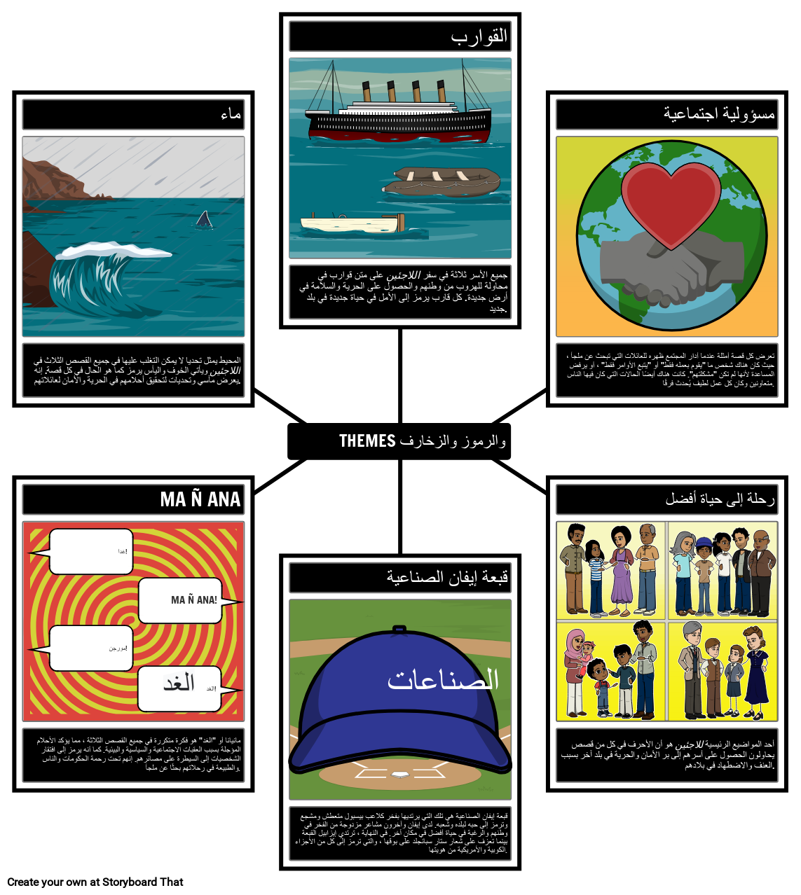 أحد المواضيع الرئيسية للاجئين هو أن الأحرف في كل من قصص يحاولون الحصول على أسرهم إلى بر الأمان والحرية في بلد آخر بسبب العنف والاضطهاد في بلادهم.