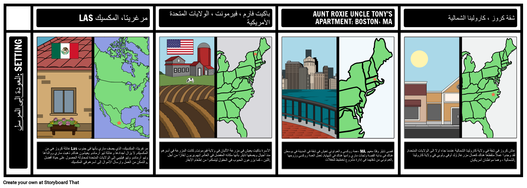إعداد القصة هو أهم الزمان والمكان. يمكن للطلاب استخدام خريطة الإعداد لتوضيح الإعدادات المختلفة في الكتاب وكتابة وصف موجز لكل منها في مربع الوصف.