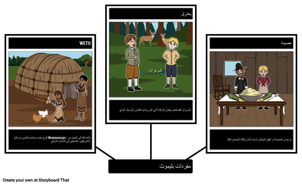 قم بإنشاء لوحة مفردات مرئية لمصطلحات المفردات الرئيسية المتعلقة بالحجاج وبليموث كولوني