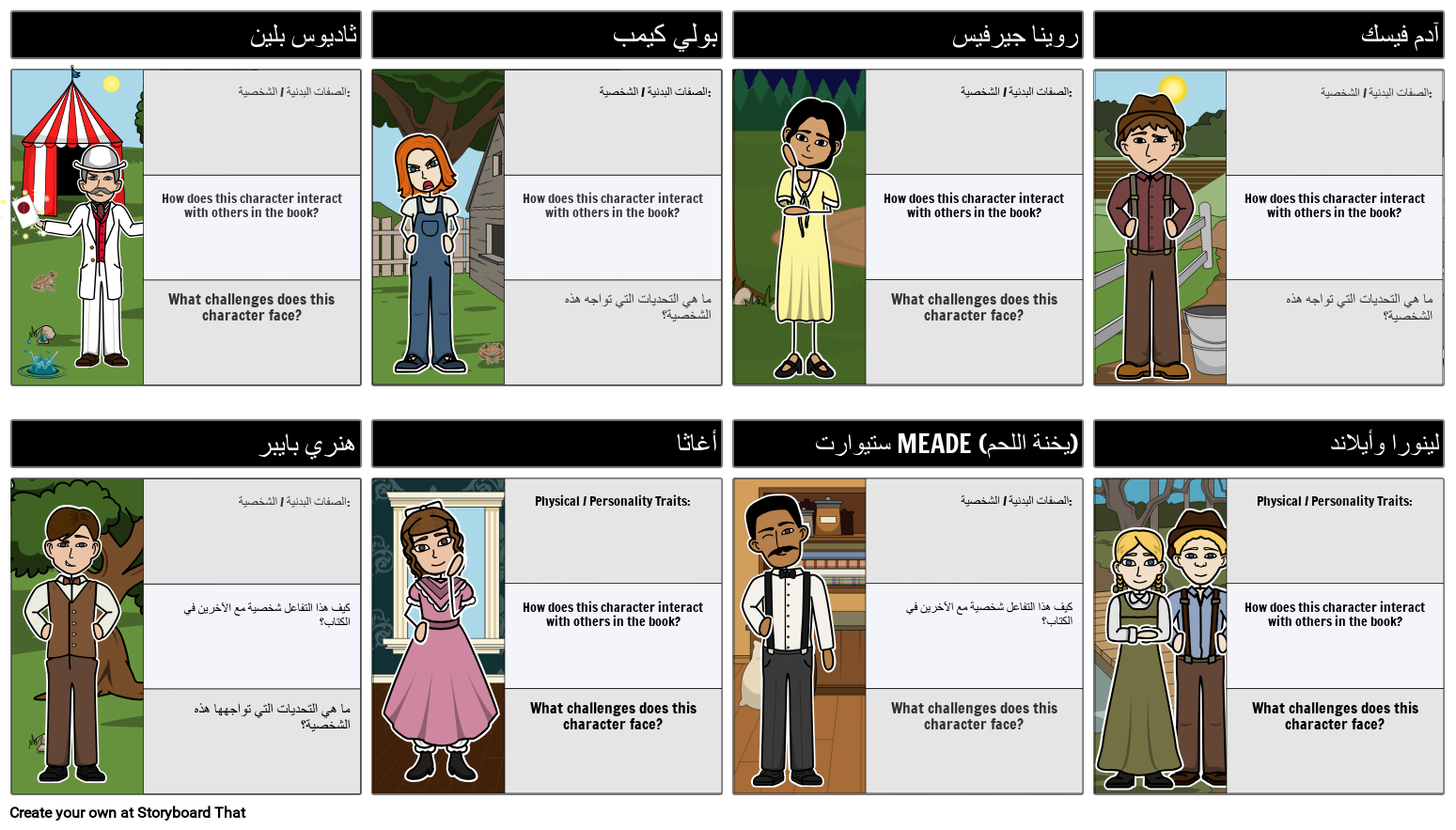 الصفات البدنية / الشخصية: How does this character interact with others in the book? ما هي التحديات التي تواجه هذه الشخصية؟
