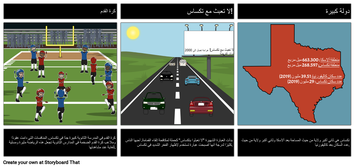 إنشاء القصص المصورة التي توضح بعض الحقائق الممتعة عن ولاية تكساس!