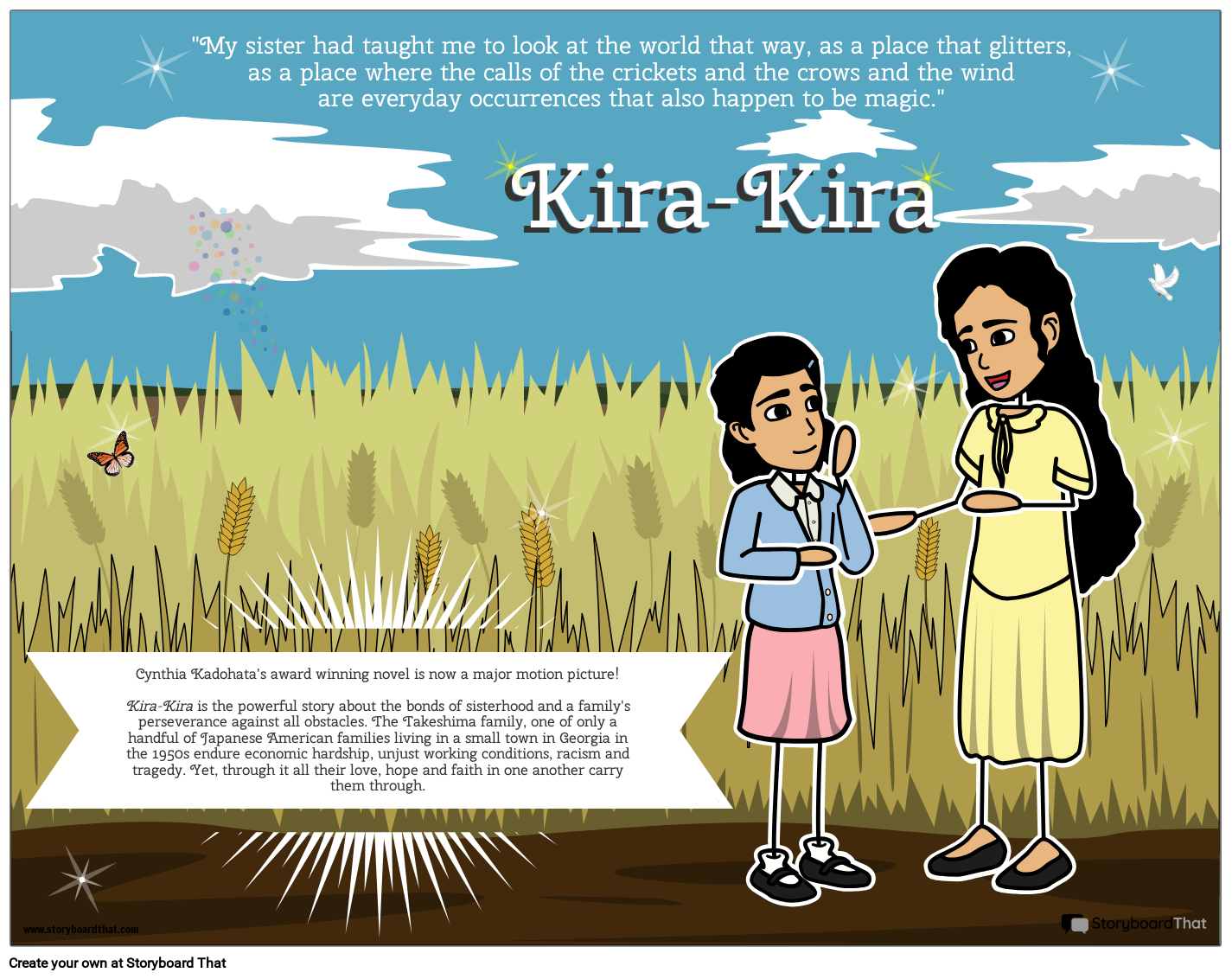 Cynthia Kadohata's award winning novel is now a major motion picture!Kira-Kira is the powerful story about the bonds of sisterhood and a family's perseverance against all obstacles. The Takeshima family, one of only a handful of Japanese American families living in a small town in Georgia in the 1950s endure economic hardship, unjust working conditions, racism and tragedy. Yet, through it all their love, hope and faith in one another carry them through.