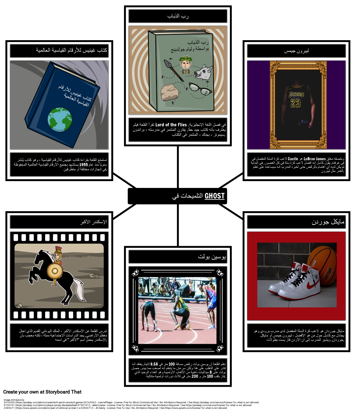 الإشارة هي إشارة إلى عمل فني أو أدبي أو شخص أو حدث مشهور. هناك العديد من الإشارات إلى ثقافة العصر الحديث في كتاب الشبح. توضح خريطة العنكبوت هذه 6 منها. هناك أكثر من ذلك بكثير! يمكن للطلاب الاستمتاع بالبحث عن التلميحات أثناء قراءتهم واستخدام خريطة العنكبوت لتحديد وتوضيح وإضافة تعليق يشرح أهميتها في القصة.