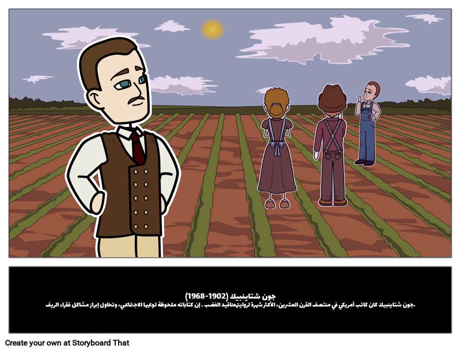 جون شتاينبيك (1902-1968)جون شتاينبيك كان كاتب أمريكي في منتصف القرن العشرين، الأكثر شهرة لروايتهعناقيد الغضب . إن كتاباته ملحوظة لوعيها الاجتماعي، وتحاول إبراز مشاكل فقراء الريف.
