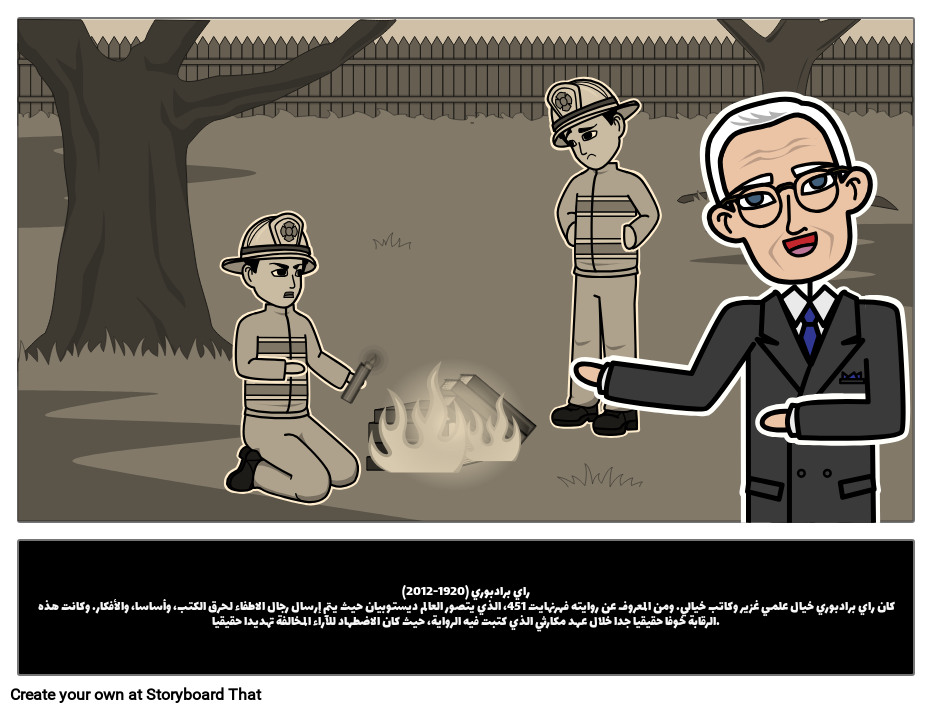 راي برادبوري (1920-2012)كان راي برادبوري خيال علمي غزير وكاتب خيالي. ومن المعروف عن روايته فهرنهايت 451، الذي يتصور العالم ديستوبيان حيث يتم إرسال رجال الاطفاء لحرق الكتب، وأساسا، والأفكار. وكانت هذه الرقابة خوفا حقيقيا جدا خلال عهد مكارثي الذي كتبت فيه الرواية، حيث كان الاضطهاد للآراء المخالفة تهديدا حقيقيا.