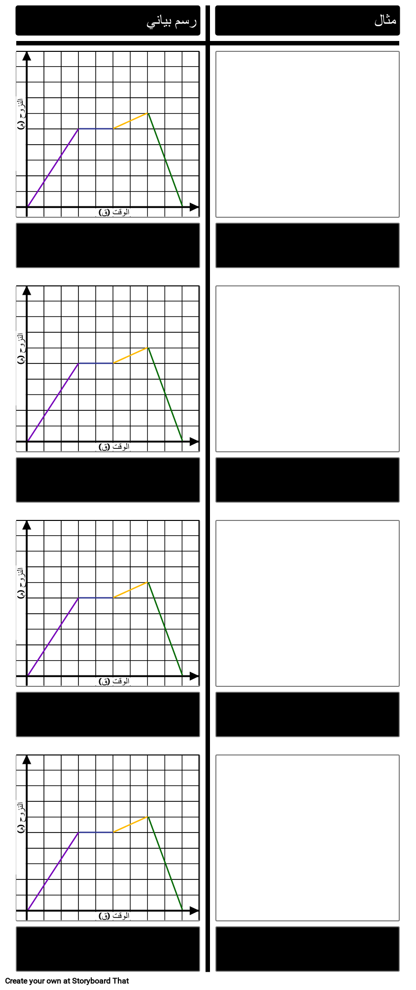 قالب الرسم البياني لإزاحة الكائن - عرض مثال سردي يشرح كل مرحلة من مراحل الرسم البياني للإزاحة بمرور الوقت