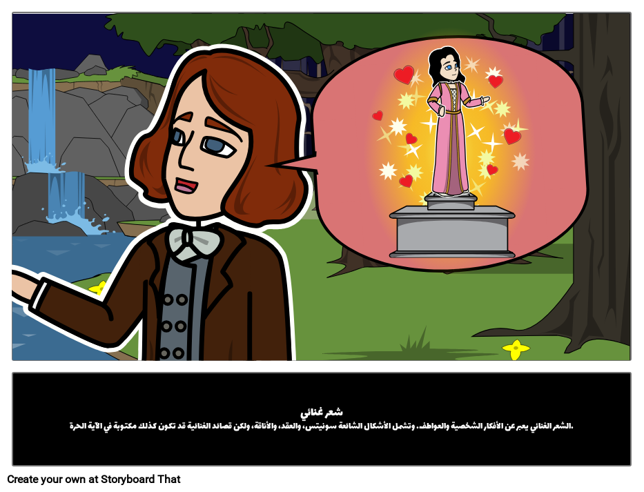 شعر غنائيالشعر الغنائي يعبر عن الأفكار الشخصية والعواطف. وتشمل الأشكال الشائعة سونيتس، والعقد، والأناقة، ولكن قصائد الغنائية قد تكون كذلك مكتوبة في الآية الحرة.