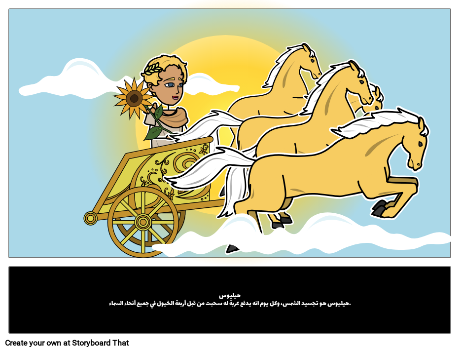 هيليوسهيليوس هو تجسيد الشمس، وكل يوم انه يدفع عربة له سحبت من قبل أربعة الخيول في جميع أنحاء السماء.