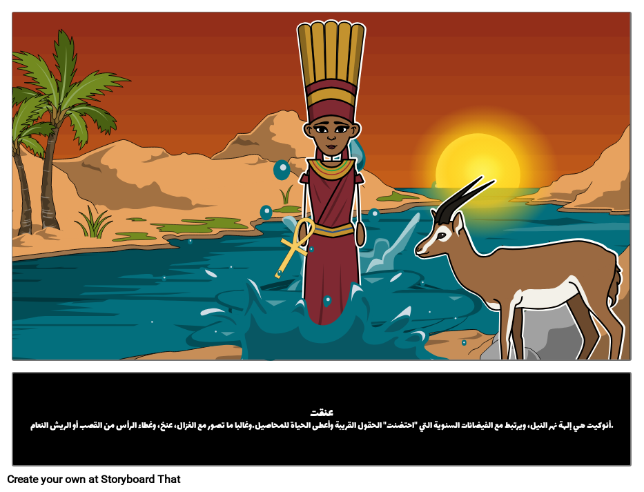 عنقتأنوكيت هي إلهة نهر النيل، ويرتبط مع الفيضانات السنوية التي "احتضنت" الحقول القريبة وأعطى الحياة للمحاصيل.وغالبا ما تصور مع الغزال، عنخ، وغطاء الرأس من القصب أو الريش النعام.