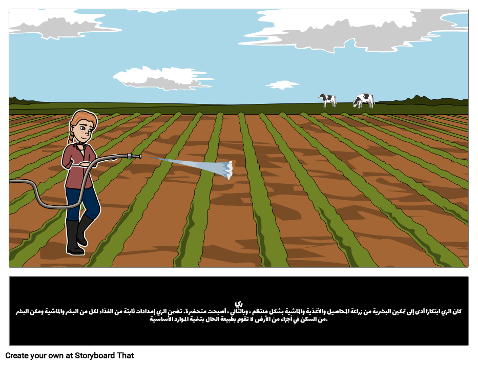 الري كان الري ابتكارًا أدى إلى تمكين البشرية من زراعة المحاصيل والأغذية والماشية بشكل منتظم ، وبالتالي ، أصبحت متحضرة. تضمن الري إمدادات ثابتة من الغذاء لكل من البشر والماشية ومكن البشر من السكن في أجزاء من الأرض لا تقوم بطبيعة الحال بتنمية الموارد الأساسية.