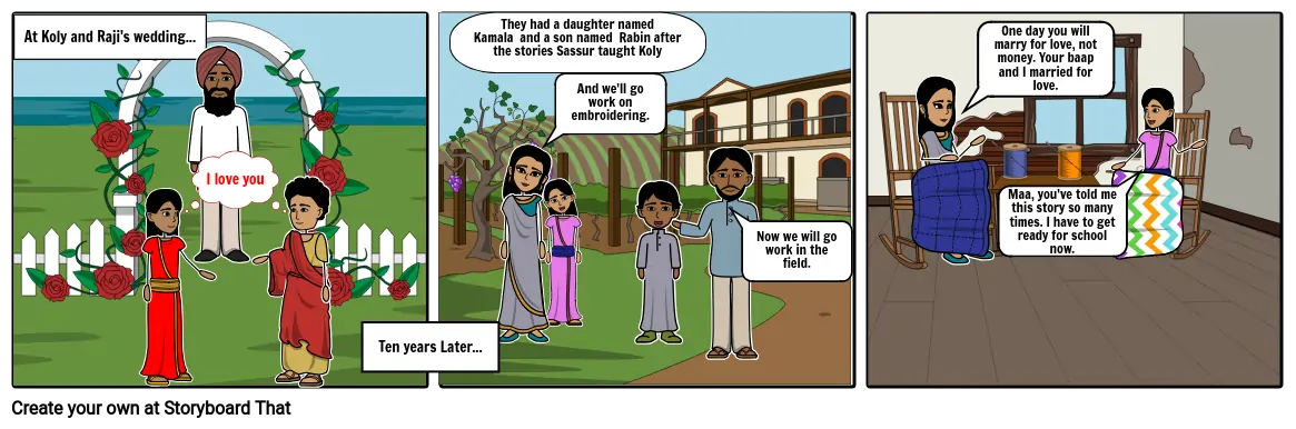 They had a daughter named Kamala and a son named Rabin after the stories Sassur taught Koly