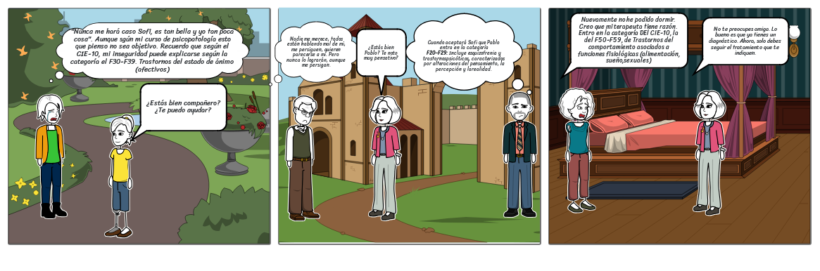 Cuando aceptará Sofi que Pablo entra en la categoría F20–F29: Incluye esquizofrenia y trastornospsicóticos, caracterizados por alteraciones del pensamiento, la percepción y larealidad.