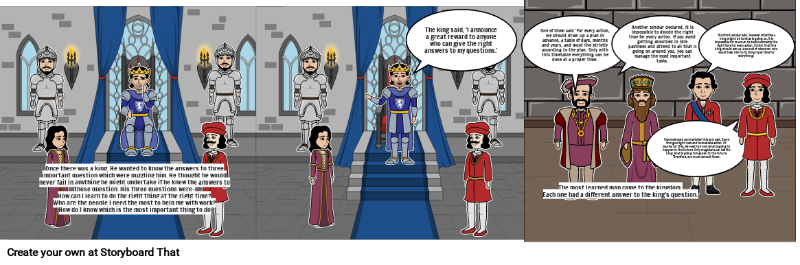 Once there was a king. He wanted to know the answers to three important question which were puzzling him. He thought he would never fail in anything he might undertake if he knew the answers to those question. His three questions were-How can I learn to do the right thing at the right time?Who are the people I need the most to help me with work?How do I know which is the most important thing to do