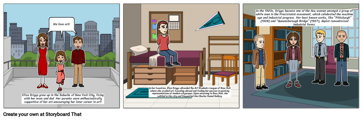 Elise Driggs grew up in the Suburbs of New York City, living with her mom and dad. Her parents were enthusiastically supportive of her art encouraging her later career in art!