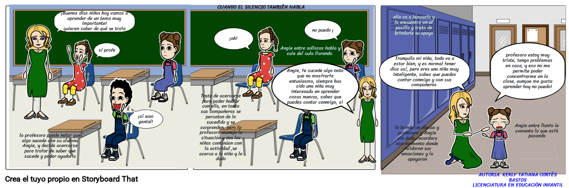 Trata de acercarse para poder hablar con ella, en tanto sus compañeros se percatan de lo sucedido y se sorprenden, pero la profesora maneja la situación y nos los niños continúan con la actividad ,se acerca a la niña y le dado