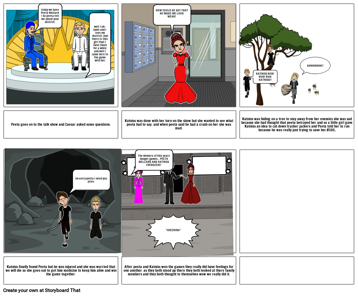 After peeta and Katniss won the games they really did have feelings for one another. as they both stood up there they both looked at there family members and they both thought to themselves wow we really did it.