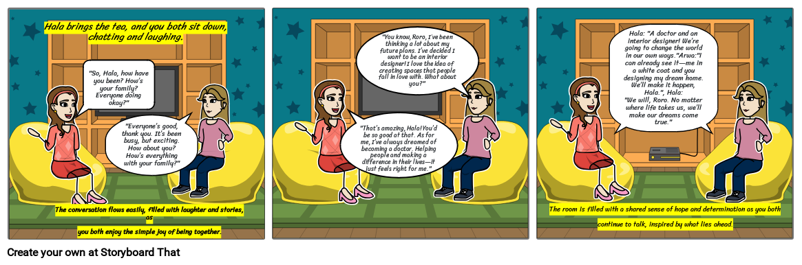 "You know, Roro, I’ve been thinking a lot about my future plans. I’ve decided I want to be an interior designer! I love the idea of creating spaces that people fall in love with. What about you?"