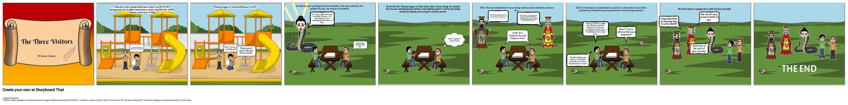 One day a boy named Smith was trying to write on the playground, but he didn't know how to write. Another boy, called Thomas, came over to help.