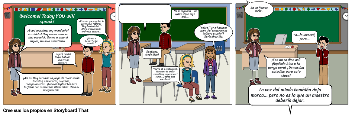 ¿Viste lo que escribió la profe en el tablero? “Hoy hablarás tú…” ¿Otra presentación oral? Qué pereza...