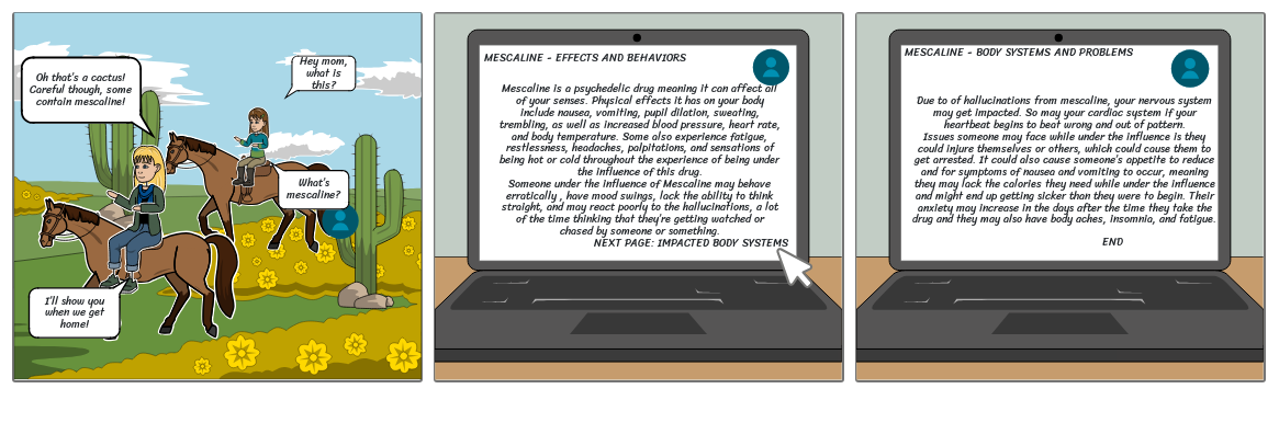 Due to of hallucinations from mescaline, your nervous system may get impacted. So may your cardiac system if your heartbeat begins to beat wrong and out of pattern.Issues someone may face while under the influence is they could injure themselves or others, which could cause them to get arrested. It could also cause someone’s appetite to reduce and for symptoms of nausea and vomiting to occur, meaning they may lack the calories they need while under the influence and might end up getting sicker than they were to begin. Their anxiety may increase in the days after the time they take the drug and they may also have body aches, insomnia, and fatigue.