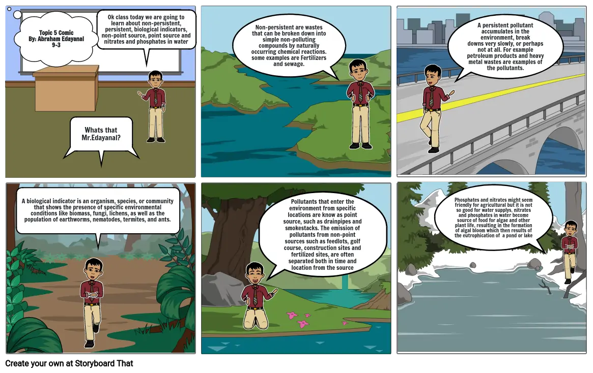 Ok class today we are going to learn about non-persistent, persistent, biological indicators, non-point source, point source and nitrates and phosphates in water