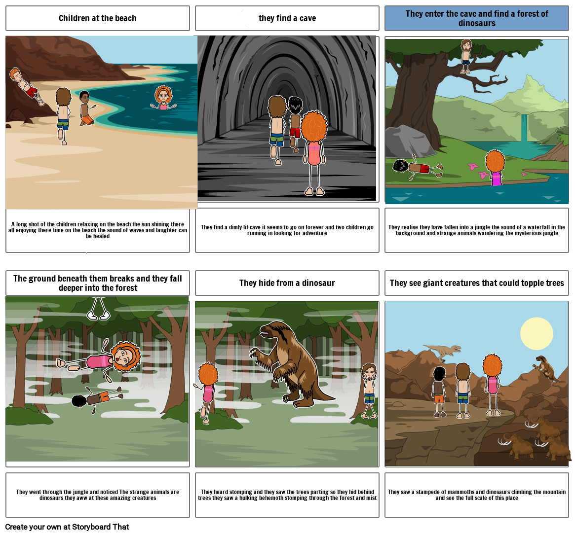 They went through the jungle and noticed The strange animals are dinosaurs they aww at these amazing creatures