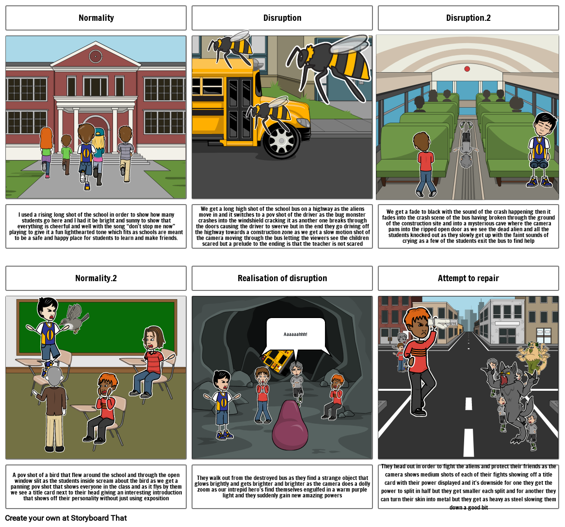 I used a rising long shot of the school in order to show how many students go here and I had it be bright and sunny to show that everything is cheerful and well with the song “don’t stop me now” playing to give it a fun lighthearted tone which fits as schools are meant to be a safe and happy place for students to learn and make friends.
