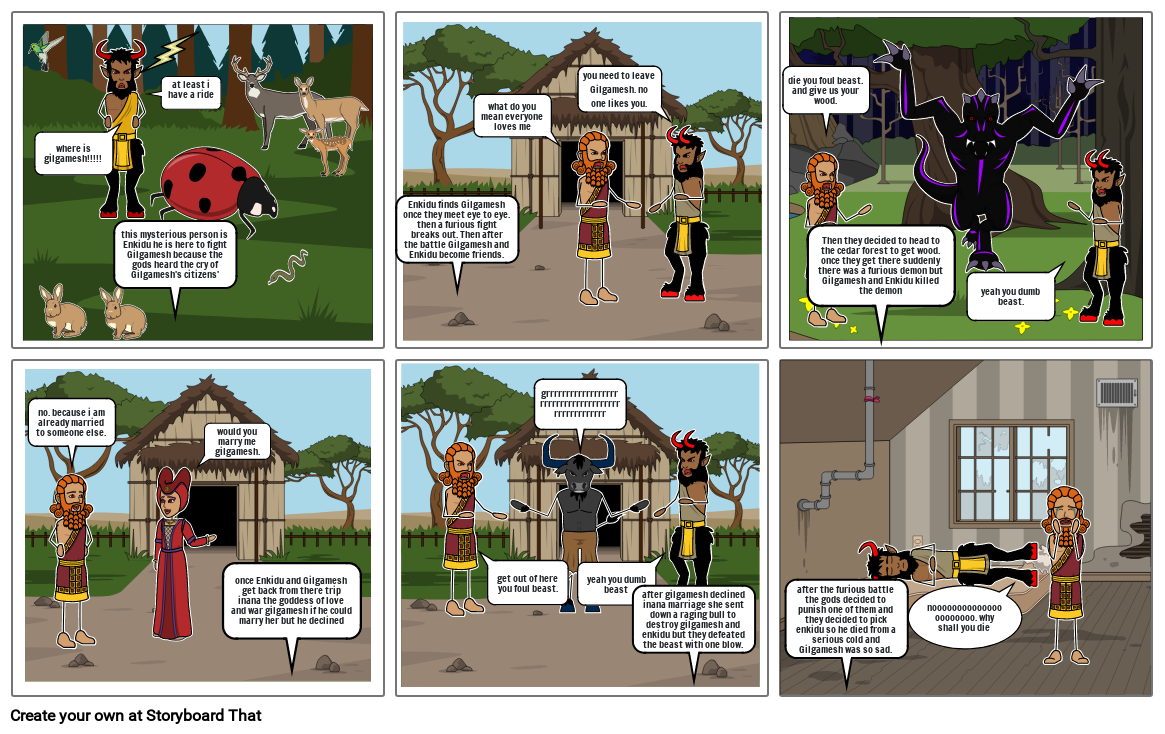 Then they decided to head to the cedar forest to get wood. once they get there suddenly there was a furious demon but Gilgamesh and Enkidu killed the demon