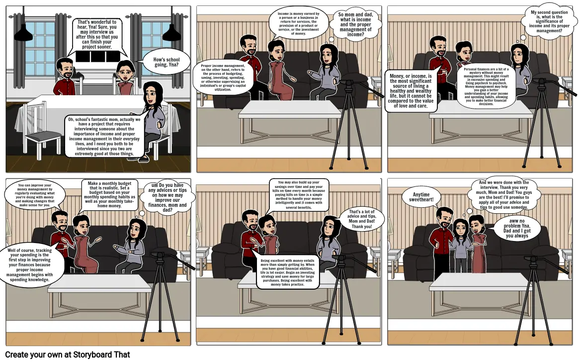 Oh, school's fantastic mom, actually we have a project that requires interviewing someone about the importance of income and proper income management in their everyday lives, and I need you both to be interviewed since you two are extremely good at those things.