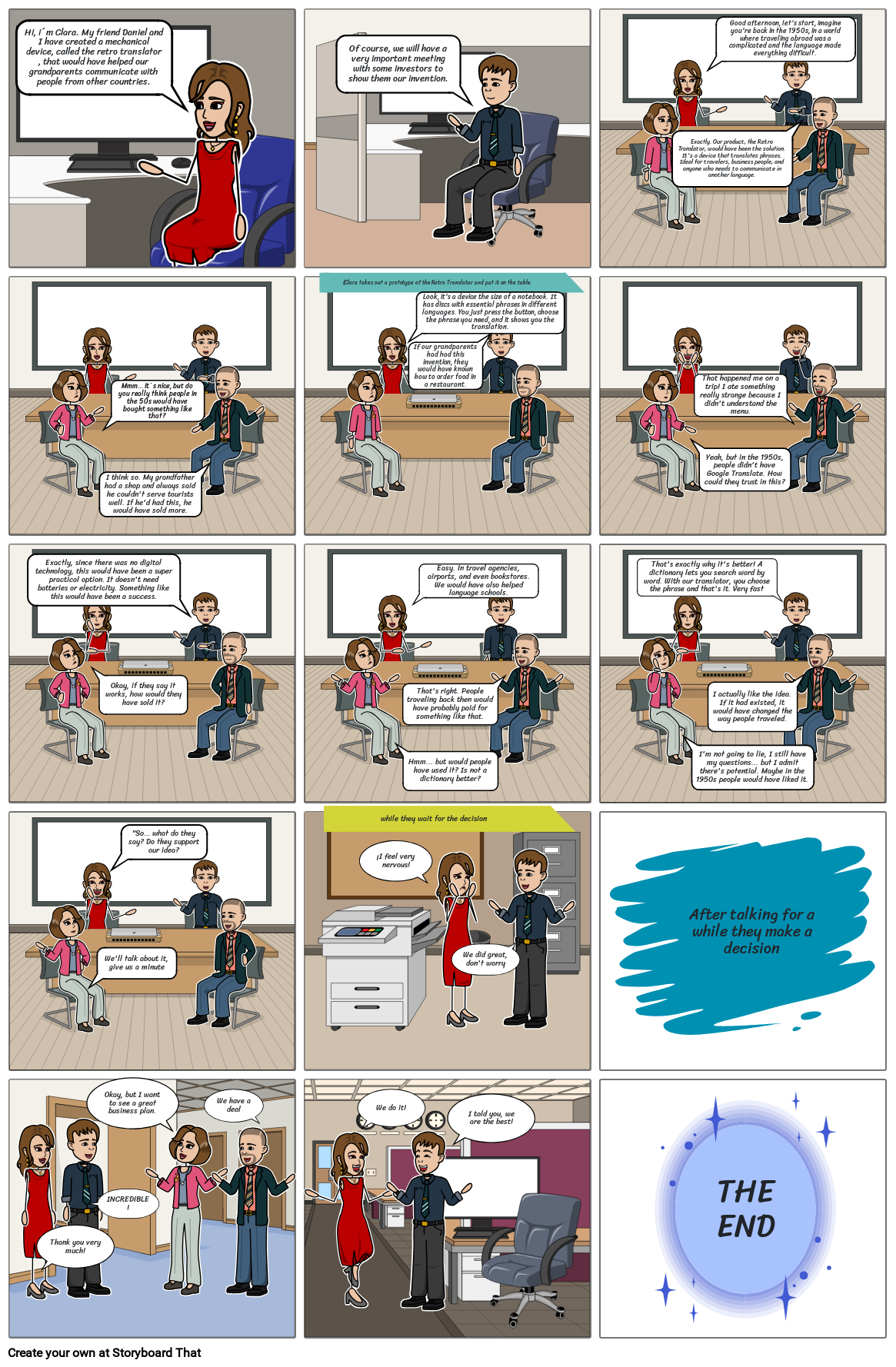 Exactly. Our product, the Retro Translator, would have been the solution. It's a device that translates phrases. Ideal for travelers, business people, and anyone who needs to communicate in another language.