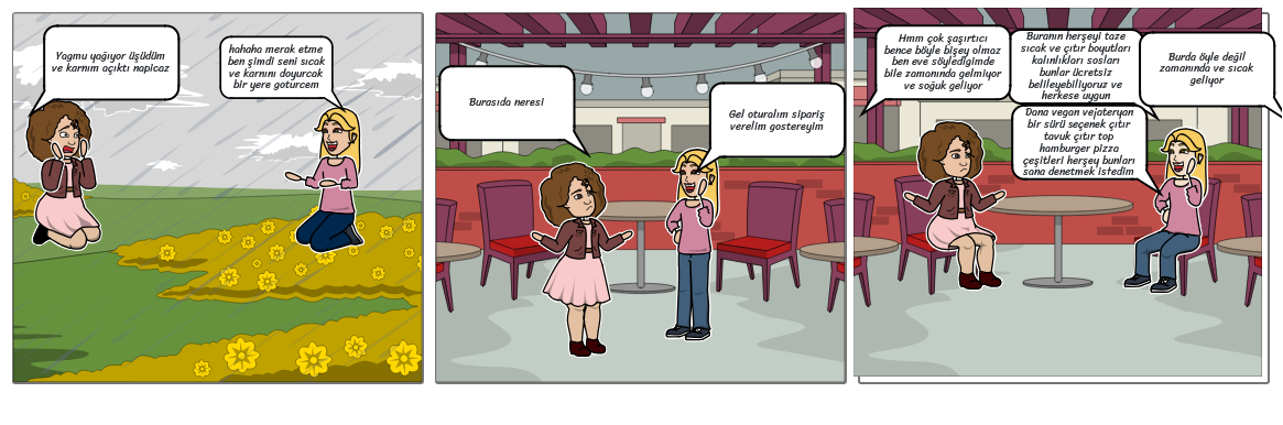 hahaha merak etme ben şimdi seni sıcak ve karnını doyurcak bir yere goturcem