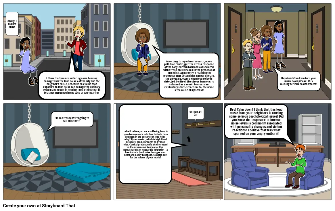 Bro! Calm down! I think that this loud music from your neighbors is causing some serious psychological issues! Did you know that exposure to intense noise levels is commonly associated with personality changes and violent reactions? I believe that was what spurred on your angry outburst!