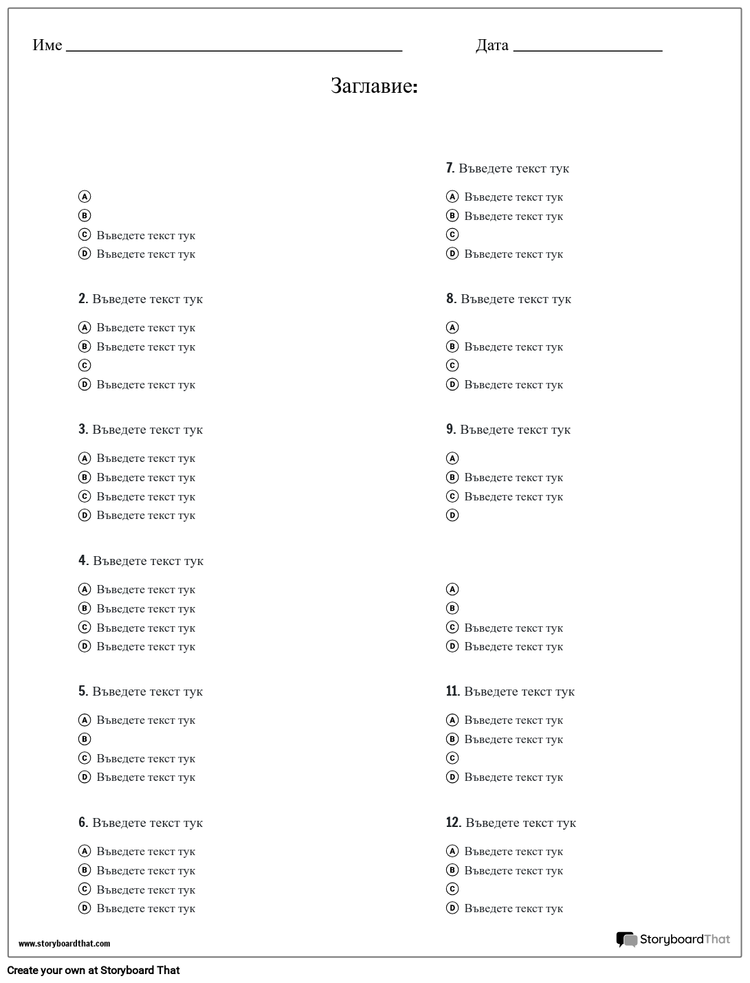 Шаблон с множество възможности за избор - две колони | Направете тестове с множество възможности за избор за ученици