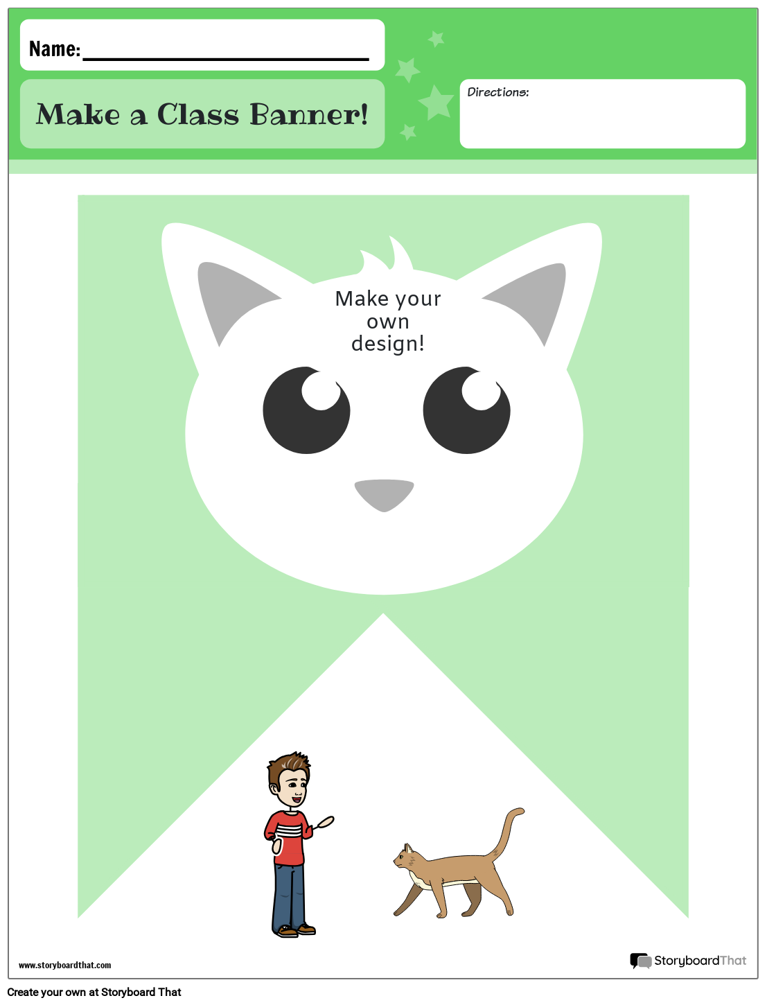 Тематичен котешки банер със зелена цветова схема, който може да се редактира, персонализира и отпечата!