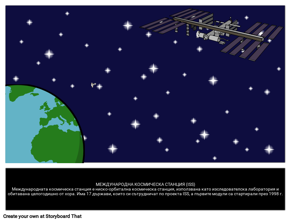 МЕЖДУНАРОДНА КОСМИЧЕСКА СТАНЦИЯ (ISS)Международната космическа станция е ниско-орбитална космическа станция, използвана като изследователска лаборатория и обитавана целогодишно от хора. Има 17 държави, които си сътрудничат по проекта ISS, а първите модули са стартирали през 1998 г.