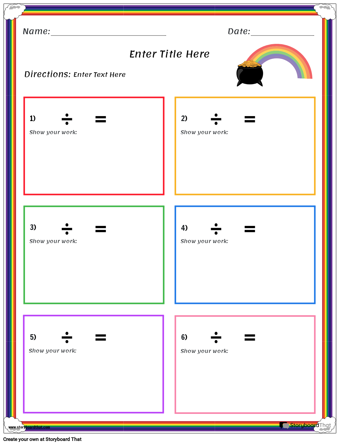 Работен лист за разделяне с 6 въпроса, плюс място за показване на работата на учениците. Портретно оформление.