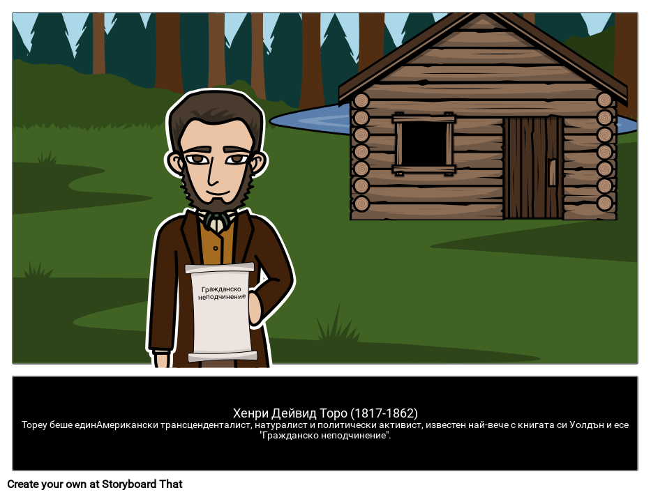Хенри Дейвид Торо (1817-1862)Тореу беше единАмерикански трансценденталист, натуралист и политически активист, известен най-вече с книгата си Уолдън и есе "Гражданско неподчинение".