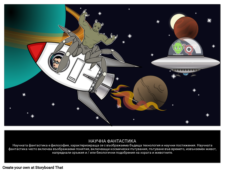 Научна фантастика Научната фантастика е клон на фикцията, характеризираща се с въображаема бъдеща технология и научни постижения. Научната фантастика често включва въображаеми понятия, включващи космически пътувания, пътуване във времето, извънземен живот, напреднали оръжия и / или биологични подобрения на хората и животните.