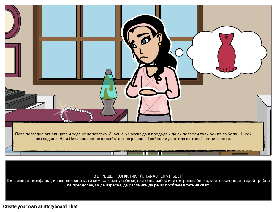 Лиза погледна огърлицата и седеше на тезгяха. Знаеше, че може да я продаде и да си позволи тази рокля за бала. Никой не гледаше. Но и Лиза знаеше, че кражбата е погрешна. - Трябва ли да отида за това? - попита се тя.