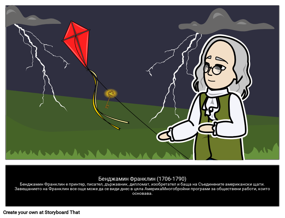 Бенджамин Франклин (1706-1790)Бенджамин Франклин е принтер, писател, държавник, дипломат, изобретател и баща на Съединените американски щати. Завещанието на Франклин все още може да се види днес в цяла АмерикаМногобройни програми за обществени работи, които основава.