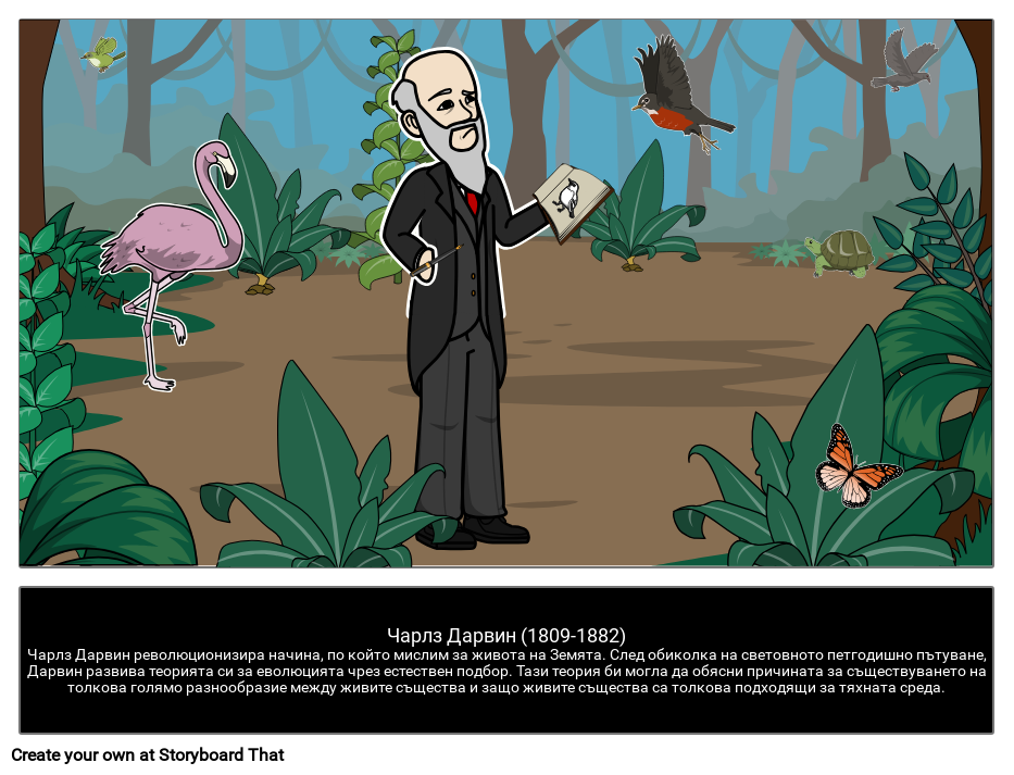 Чарлз Дарвин (1809-1882)Чарлз Дарвин революционизира начина, по който мислим за живота на Земята. След обиколка на световното петгодишно пътуване, Дарвин развива теорията си за еволюцията чрез естествен подбор. Тази теория би могла да обясни причината за съществуването на толкова голямо разнообразие между живите същества и защо живите същества са толкова подходящи за тяхната среда.