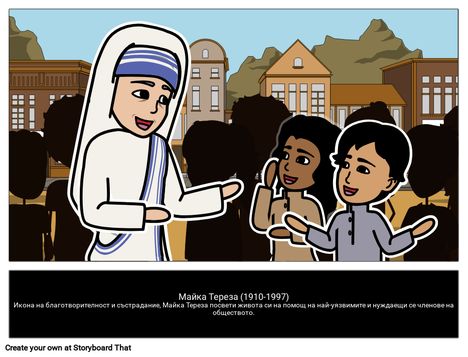 Майка Тереза (1910-1997)Икона на благотворителност и състрадание, Майка Тереза посвети живота си на помощ на най-уязвимите и нуждаещи се членове на обществото.