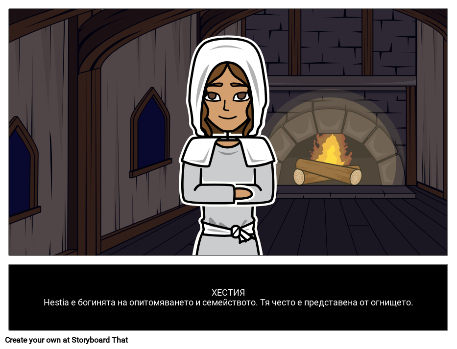 ХЕСТИЯHestia е богинята на опитомяването и семейството. Тя често е представена от огнището.