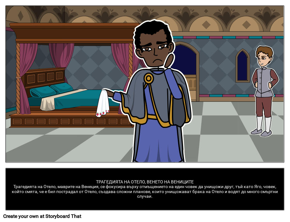 ТРАГЕДИЯТА НА ОТЕЛО, ВЕНЕТО НА ВЕНИЦИТЕТрагедията на Отело, маврите на Венеция, се фокусира върху отмъщението на един човек да унищожи друг, тъй като Яго, човек, който смята, че е бил пострадал от Отело, създава сложни планове, които унищожават брака на Отело и водят до много смъртни случаи.