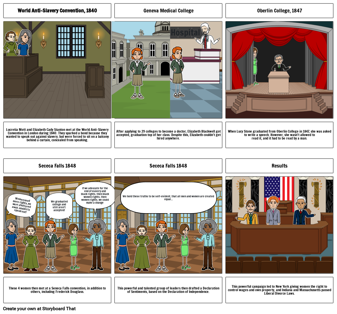 This powerful and talented group of leaders then drafted a Declaration of Sentiments, based on the Declaration of Independence.