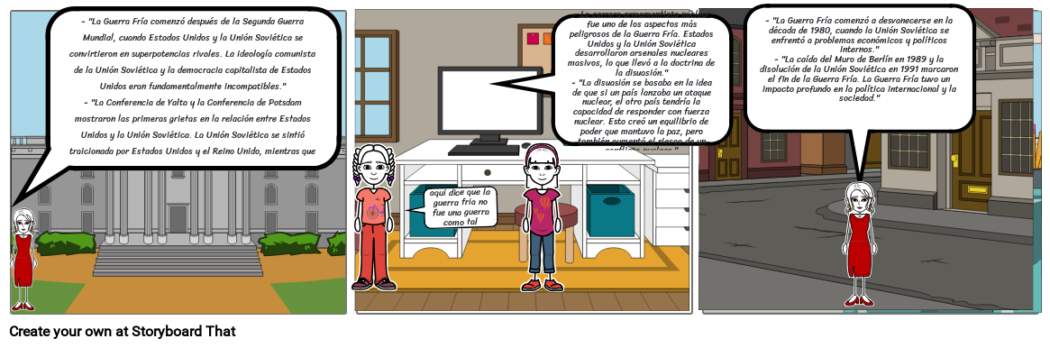 - "La Guerra Fría comenzó después de la Segunda Guerra Mundial, cuando Estados Unidos y la Unión Soviética se convirtieron en superpotencias rivales. La ideología comunista de la Unión Soviética y la democracia capitalista de Estados Unidos eran fundamentalmente incompatibles."- "La Conferencia de Yalta y la Conferencia de Potsdam mostraron las primeras grietas en la relación entre Estados Unidos y la Unión Soviética. La Unión Soviética se sintió traicionada por Estados Unidos y el Reino Unido, mientras que Estados Unidos y el Reino Unido vieron a la Unión Soviética como una amenaza expansionista."